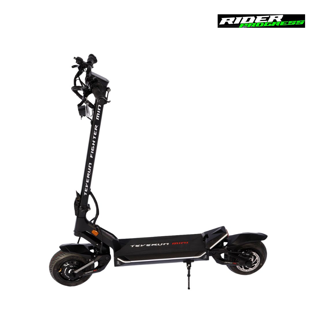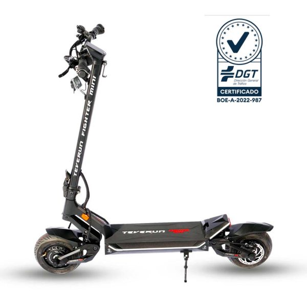 everun Fighter Mini, el nuevo patinete eléctrico homologado por la DGT. Teverun sorprende por su increíble comodidad, potencia, calidad y sobretodo porque está dotado con la última tecnología del mercado. Un patinete con un Motor Dual 2x500W, en dos versiones de batería, 52V y 60V, perfecto para devorar la ciudad y cualquier tipo de terreno gracias a su suspensión hidráulica offroad de gran recorrido. Teverun Fighter Mini cuenta ademas con una atractiva pantalla TFT, encendido NFC, luces laterales y en mástil, freno de disco hidráulicos… Un patinete muy completo a un precio excelente para los usuarios más exigentes.