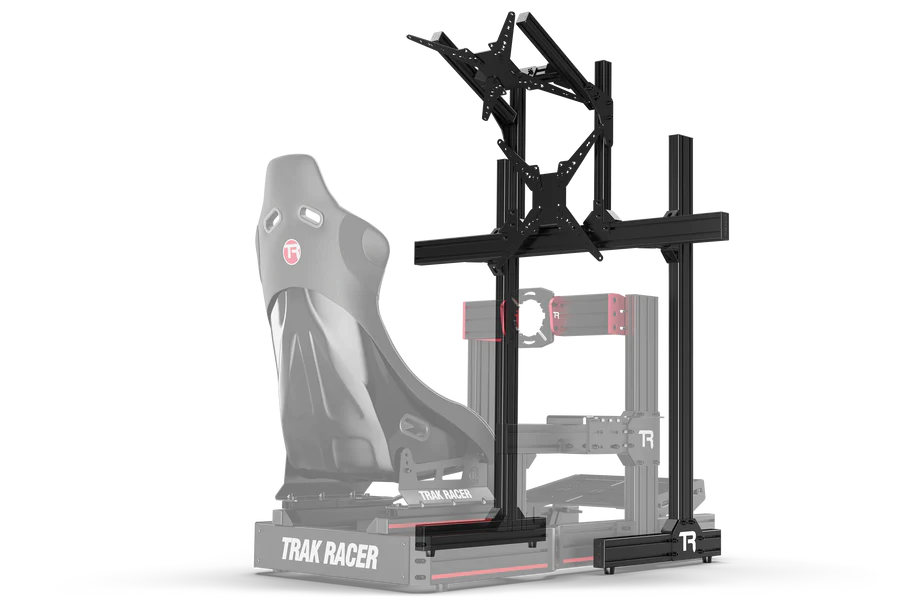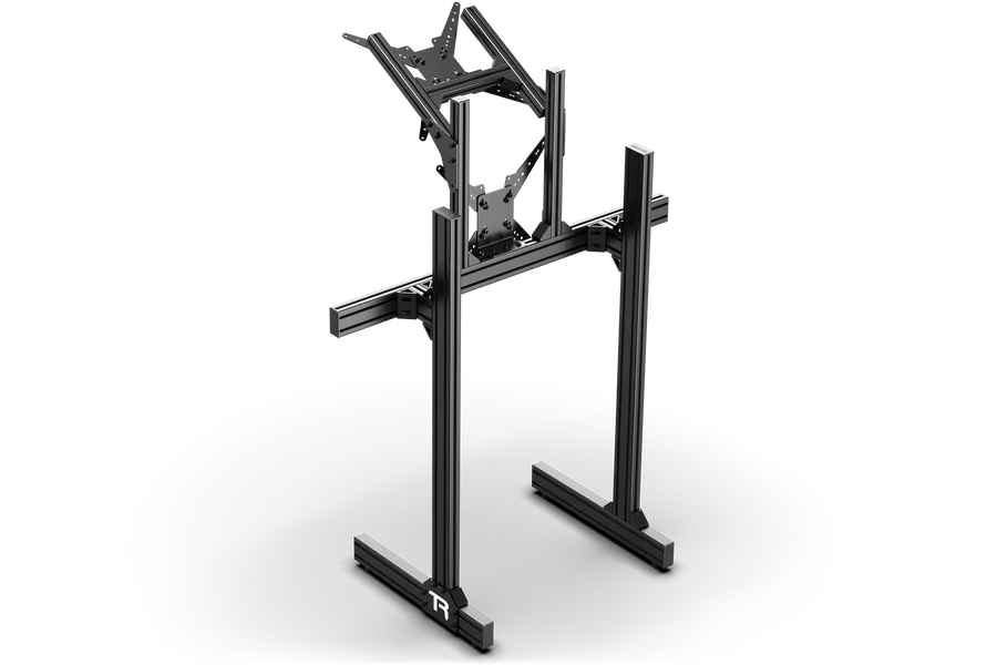 Mejore su experiencia de juego con el soporte para monitor doble montado en el piso Trak Racer, donde la innovación se combina con la estabilidad para una aventura de simulación de vuelo y carreras de simulación sin igual.